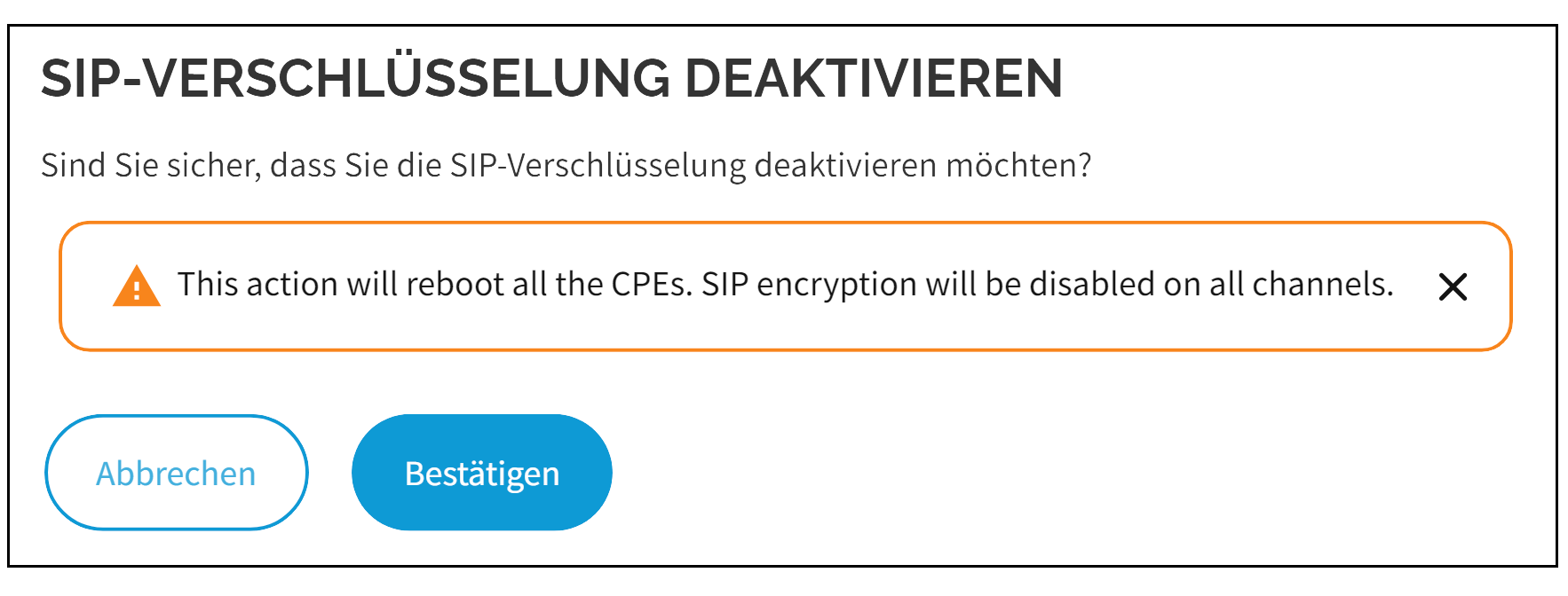 Der Dialog SIP-Verschlüsselung deaktivieren erscheint.