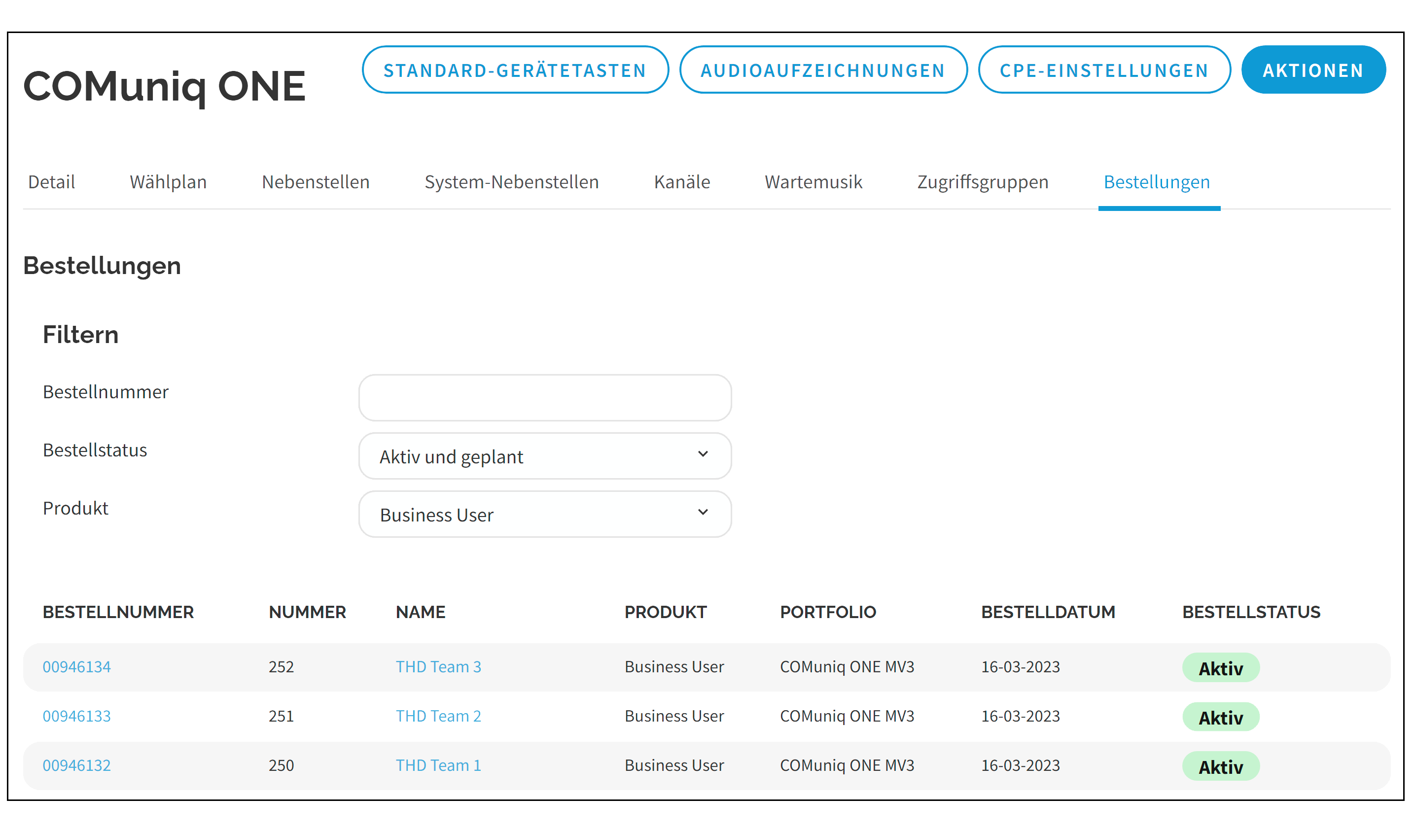 Bestellungen | Auf dieser Registerkarte können Sie den Verlauf dieser Bestellung einsehen. |