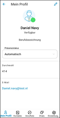 Im Bereich Mein Profil können Sie Ihre Durchwahl, Ihre verschiedenen Telefonnummern und Ihre E-Mail-Adresse sehen und