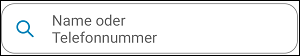Das Feld zur Kontaktsuche befindet sich oberhalb der Kontaktliste. Wischen Sie die Kontaktliste ggf. mit dem Finger nach unten, falls das Suchfeld noch nicht sichtbar sein sollte. Hier können Sie einen Vor- oder Nachnamen sowie eine Telefonnummer eingeben, um Ihre Kontakte zu durchsuchen.