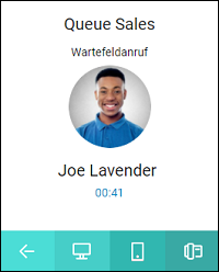 |  Der Anrufbildschirm bleibt im mittleren Teil der SWITCHBOARD Oberfläche sichtbar, auch wenn Sie das Gespräch über ein anderes Endgerät führen. Sie können über die SWITCHBOARD Oberfläche den Anruf weiterhin Beenden, Parken, Weiterleiten, auf Halten legen und das Endgerät wechseln. |