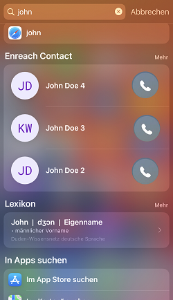 Sie können auch die Suchfunktion Ihres iPhones oder iPad nutzen, um Kontakte in COMuniq ONE zu suchen.