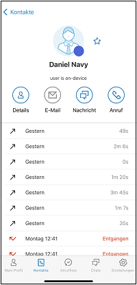 Die Liste der Anrufe mit diesem Kontakt werden angezeigt.